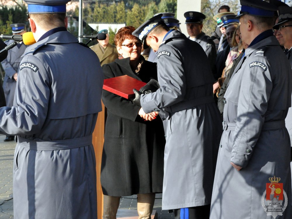 Podczas uroczystości Komendant Stołeczny Policji wręczył okolicznościową plakietę Wójt Gminy Jabłonna Oldze Muniak.
