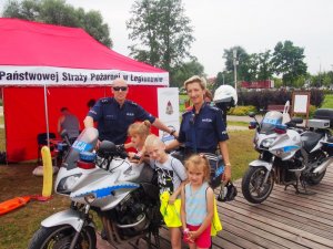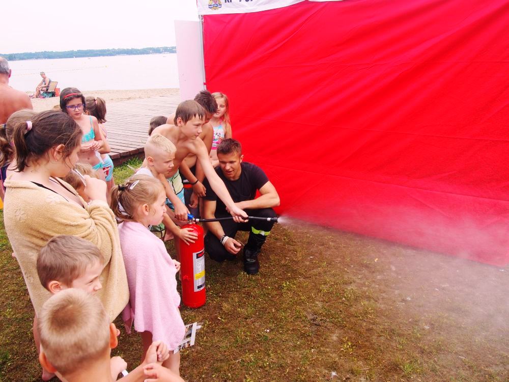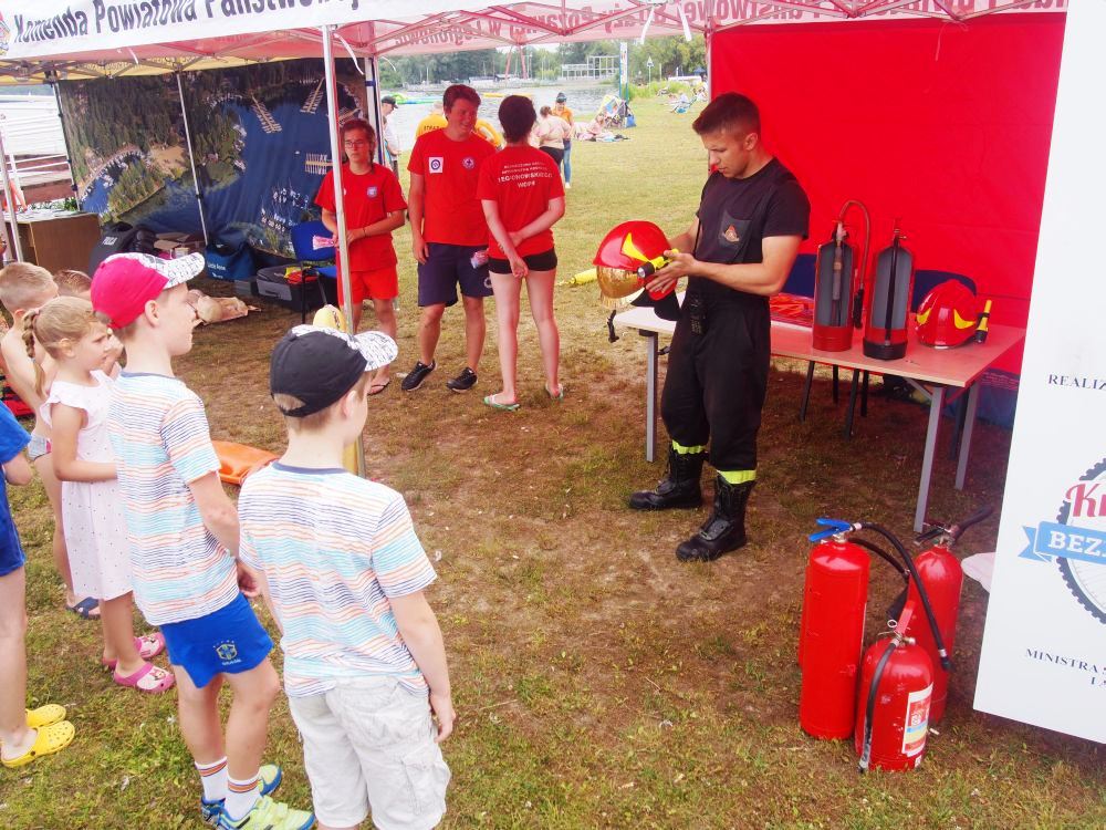 Strażacy z Państwowej Straży Pożarnej w Legionowie również pokazali uczestnikom swój sprzęt i wyposażenie do pracy. Wskazali jak dbać o swoje bezpieczeństwo podczas wakacji w przypadku kontaktu z ogniem.