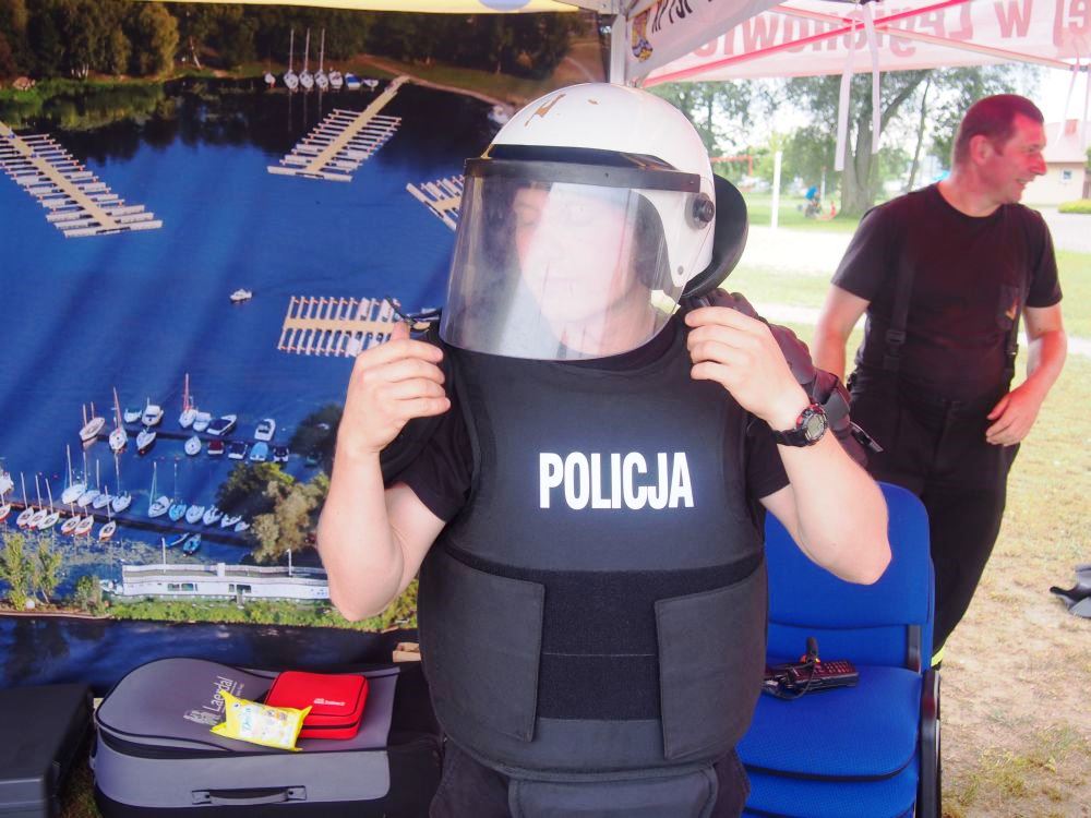 Policjantaka z legionowskiej komendy przypomniała numery alarmowe oraz zasady wzywania pomocy. Dzieci mogły obejrzeć policyjne motocykle wykorzystywane do służby przez wydział ruchu drogowego. Dorośli natomiast mieli możliwość przymierzania alkogogle i narkogogle, które obrazowały stan świadomości człowieka pod wpływem alkoholu i sroddów odurzających.