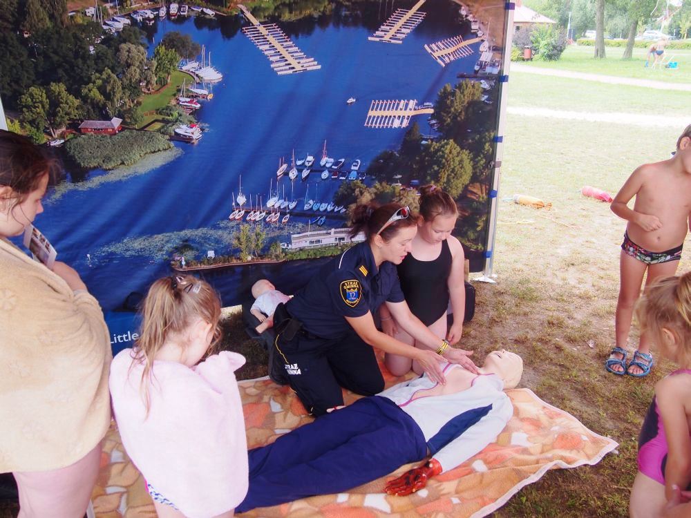 Wczoraj na plaży nad Jeziorem Zegrzyńskim w Nieporęcie miało miejsce kolejne wakacyjne spotkanie z wypoczywającymi nad wodą dziećmi i ich opiekunam. Przedstawiciele służb mundurowych tłumaczyli zebranym jak bezpiecznie zachowywać się na obszarach wodnych. Uczestnicy zajęć z dużym zainteresowaniem słuchali rad prelegentów dotyczących bezpieczeństwa w wodzie, nad wodą i na wodzie.