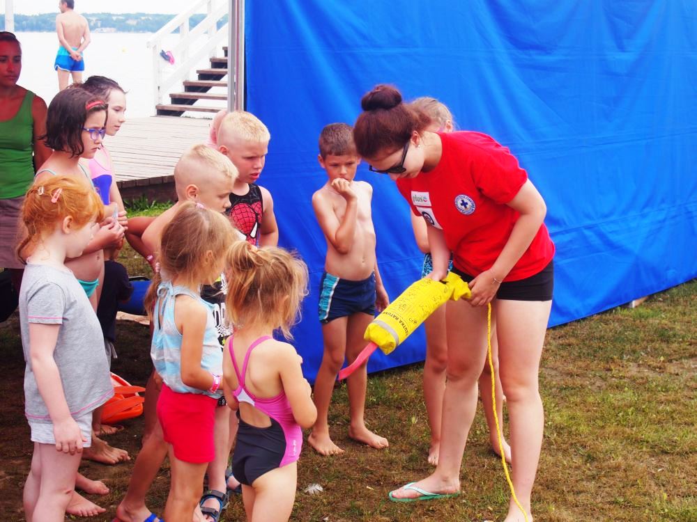 Na koniec spotkania każdy uczestnik otrzymał pamiątkowe gadżety (książeczki, broszurki, odblaski oraz opaski), które przypominać im będą o zasadach bezpieczeństwa nad wodą.