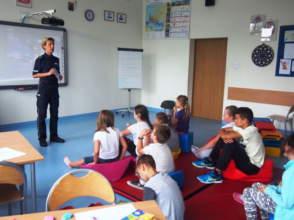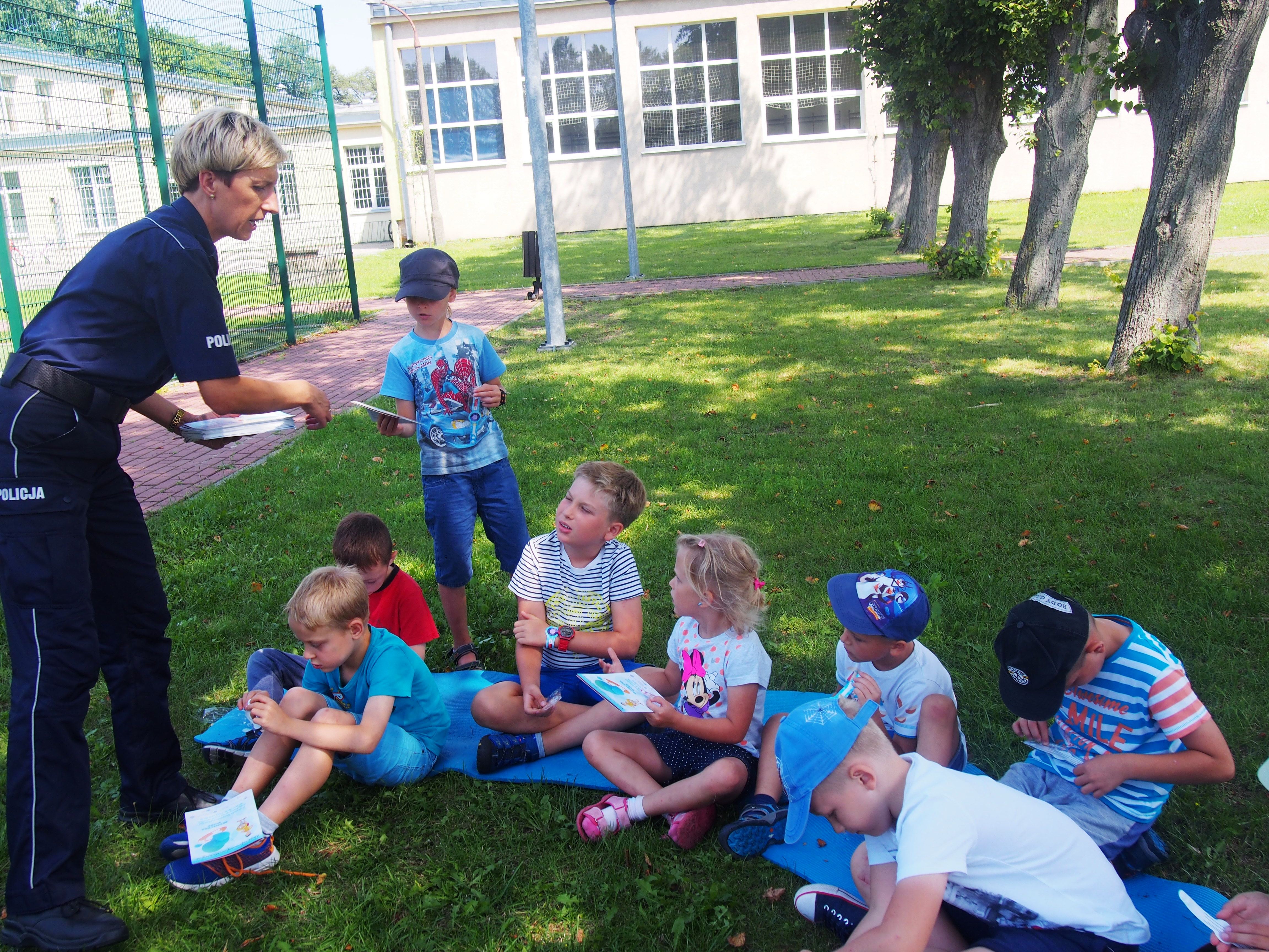 Policjantka z legionowskiej komendy na terenie gminy Wieliszew zorganizowała cykl spotkań z dziećmi na półkoloniach w Wieliszewie i Skrzeszewie. Podczas zajęć przypomniano podstawowe zasady bezpieczeństwa w domu, nad wodą, na wakacyjnym wyjeździe. Nie zabrakło też podstawowych zasad bezpieczeństwa w ruchu drogowym. Mundurowa uświadomiła półkolonistom jak niebezpieczny może być kontakt z osobami nieznajomymi. Przypomniano także o numerach alarmowych oraz sposobie powiadamiania służb ratunkowych o zdarzeniu.