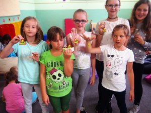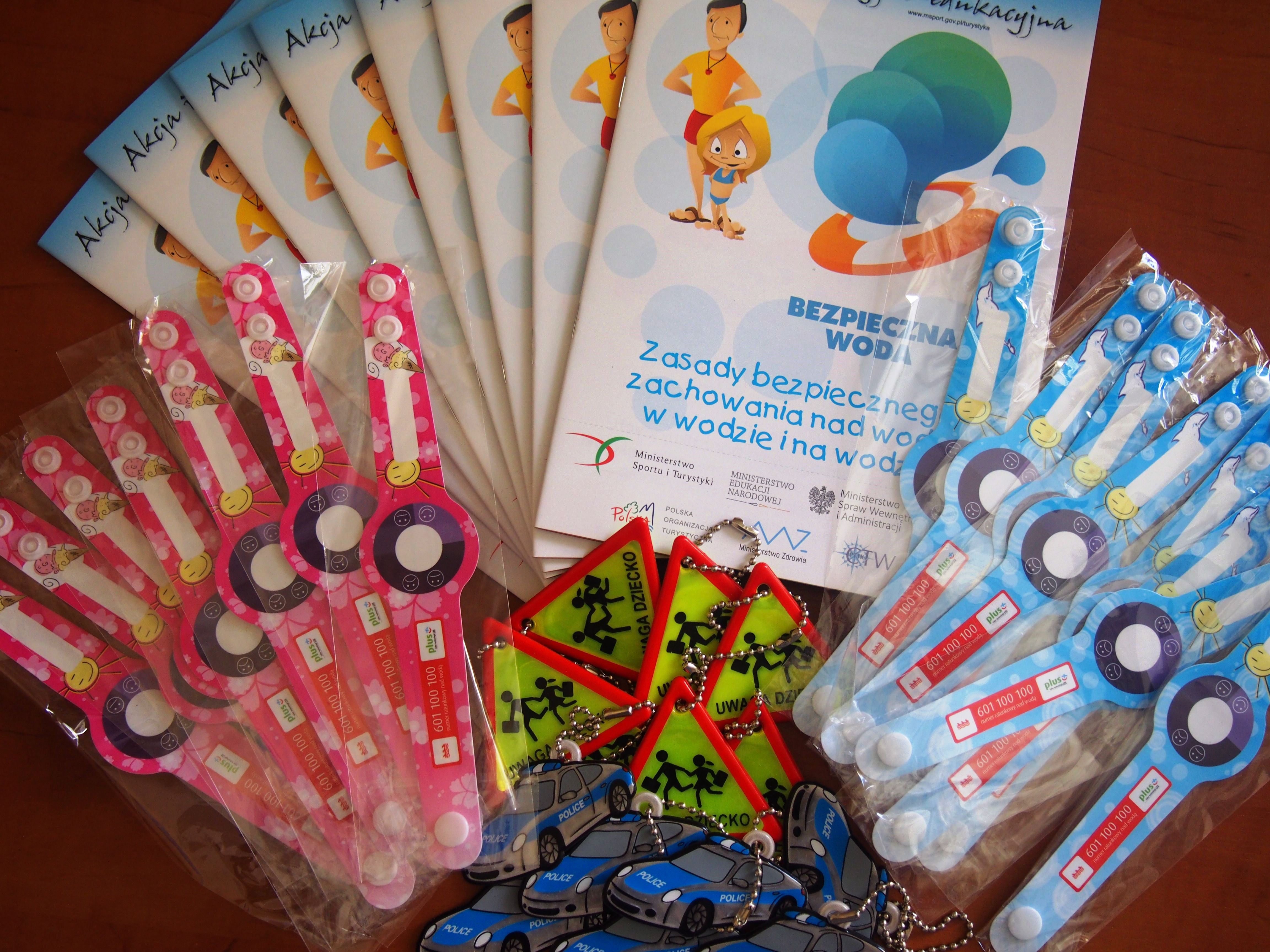 Na zakończenie zajęć dzieci mogły bliżej zapoznać się z pieskiem. Pamiątką spotkania dla uczestników zajęć były broszurki dot. zasad bezpieczeństwa na obszarach wodnych bądź gadżety ufundowane przez Gminę Jabłonna i paski na rękę przekazane przez legionowski WOPR.