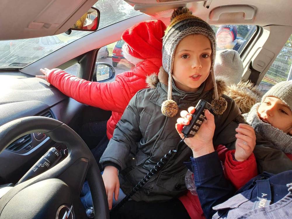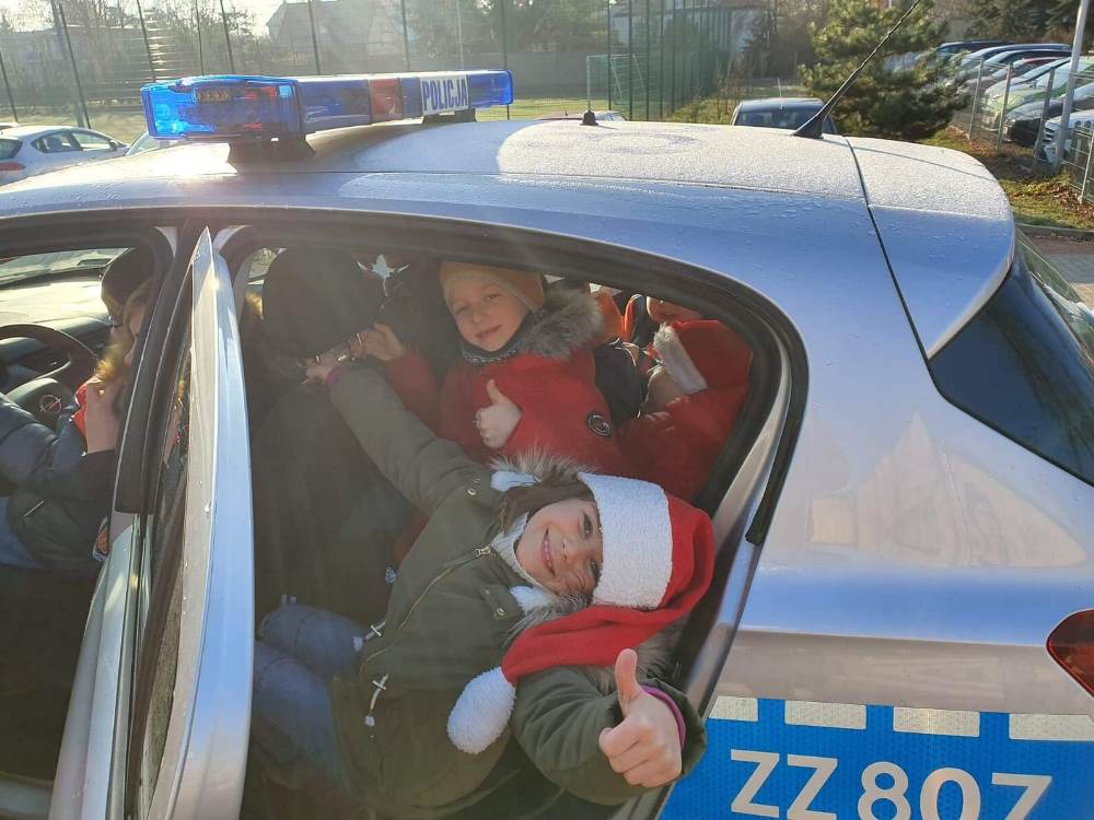 Oczywiście wizyta nie odbyło się bez pokazu sprzętu policyjnego – kajdanki, pałka policyjna, „lizak” i radiowóz – zawsze budzą radość na twarzach dzieci.